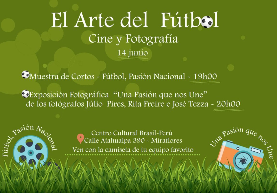 Llegó el Mundial 2018 y nosotros no podríamos quedar fuera de esta gran fiesta. Este 14 de JUNIO invitamos usted a celebrar el inicio del Mundial con: Exhibición de cortos "Fútbol, pasión nacional", Exposición fotográfica "Una pasión que nos une", de los fotógrafos Julio Cesar Pires, Rita Freire y José Tezza.