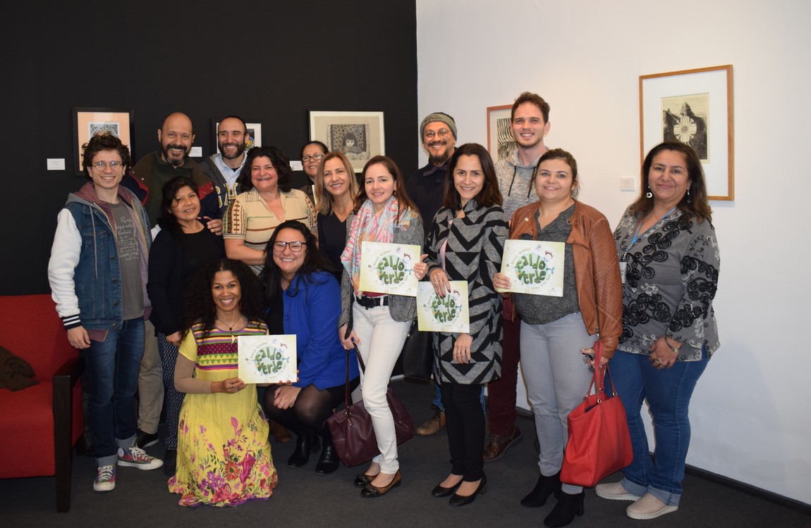 A autora Daniele Geammal e Pandorga Companhia de Teatro acompanhados da diretora Rose Falcão e professores do CCBP.