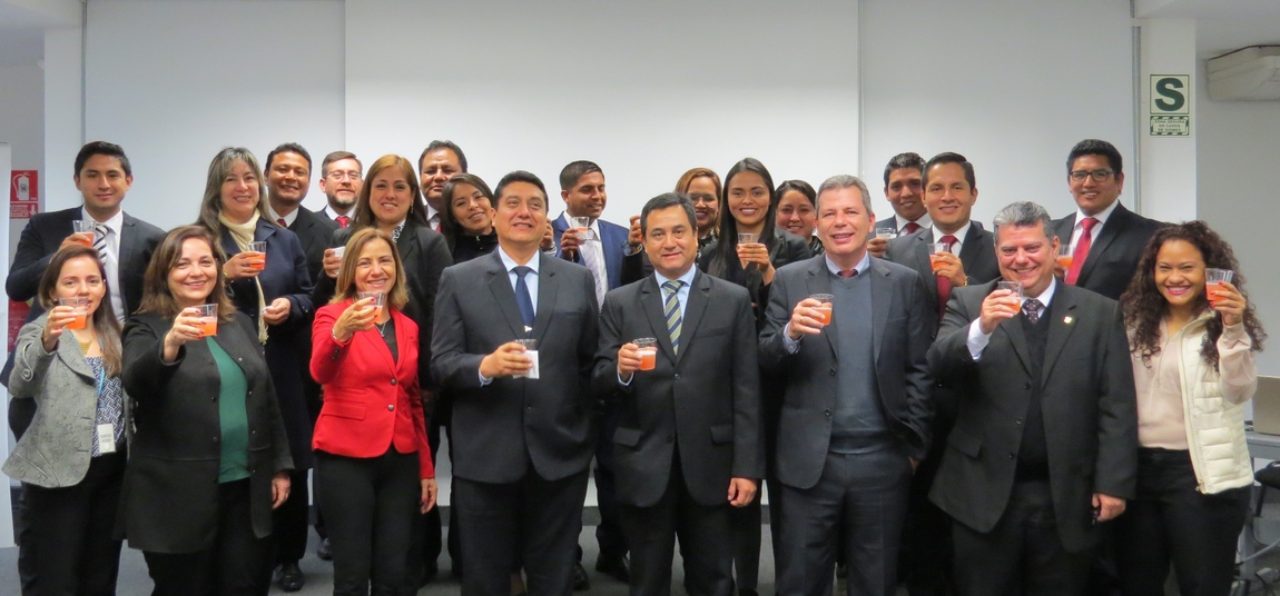 Autoridades presentes: Isabel Balué - Adida da Agência Brasileira de Inteligência (ABIN); Comandante Miguel Palma - Investigador Criminal e Analista de Inteligência (PNP); Coronel Oscar Rolando Serván López - Chefe da Direção de Inteligência Antidrogas (Diviad) da Dirandro; Delegado Marcos Farias - Adido da Polícia Federal do Brasil (PF); Delegado Celso Gabriel Castro de Lucena - Adido Adjunto da Polícia Federal do Brasil (PF).