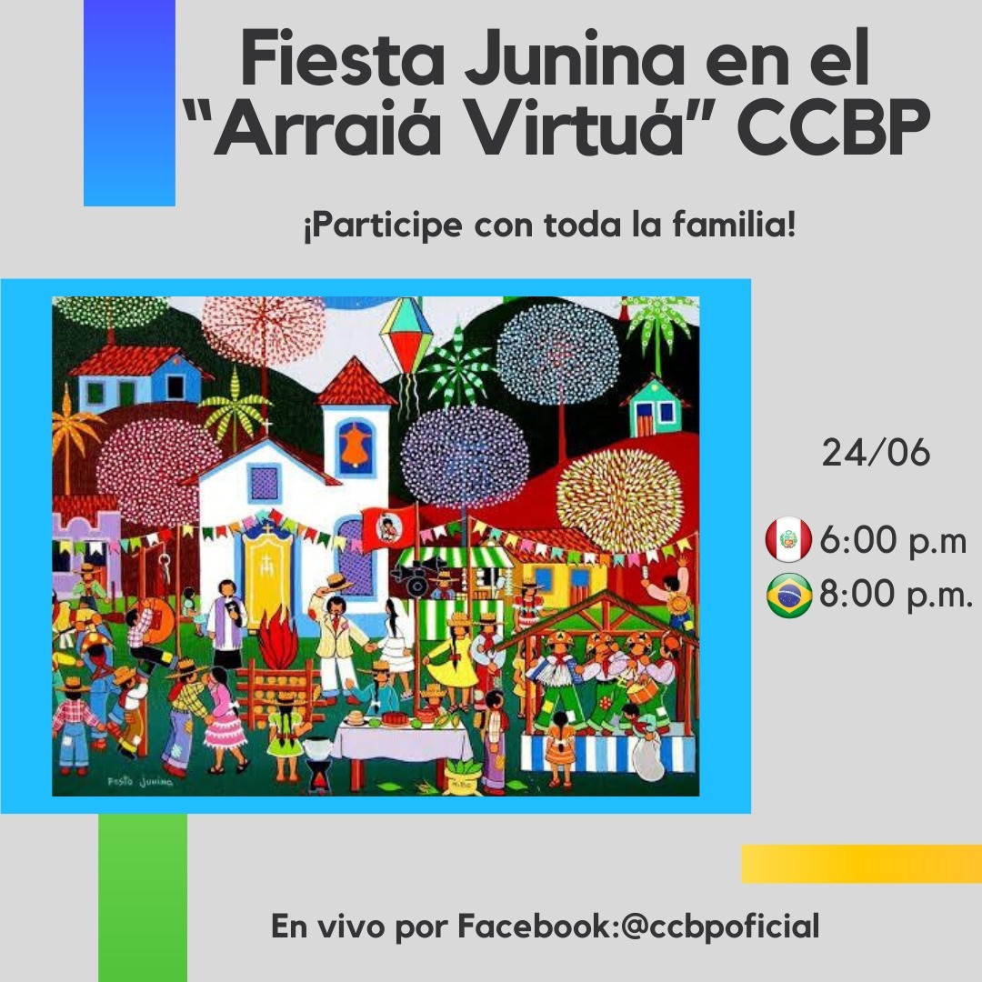 Alista tu sombrero de paja, aquella camisa a cuadros, tu vestido de flores, la “pamoña”, “canjica”, canchita, choclo y mucha alegría y participa de la Fiesta Junina del “Arraiá CCBP”.
