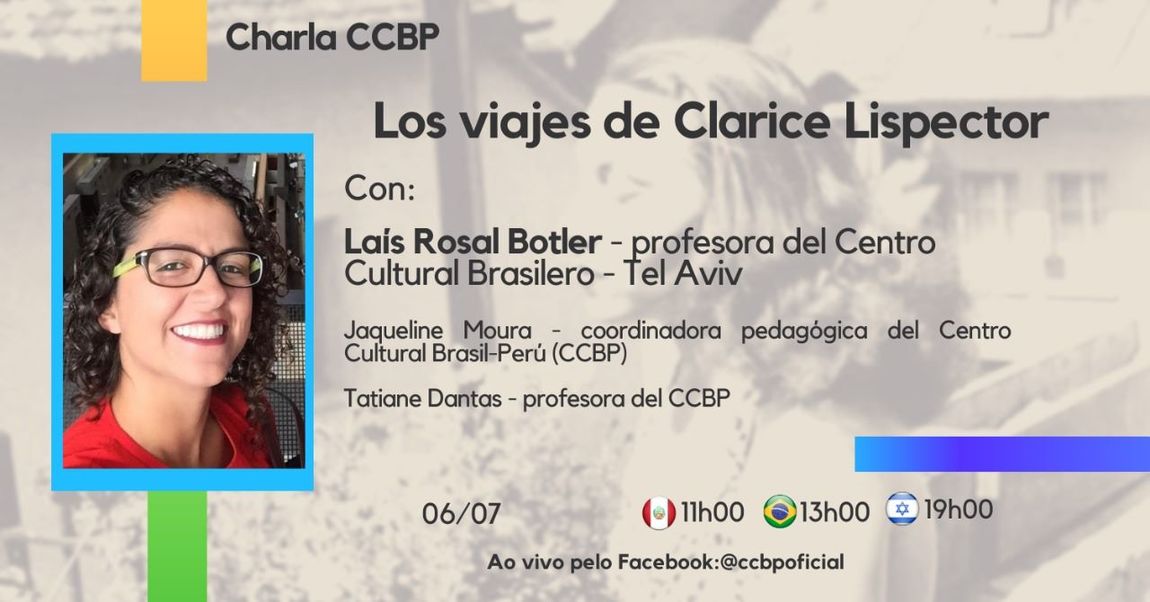 CHARLA CCBP presenta "Los viajes de Clarice Lispector" con Laís Rosal Botler, profesora del Centro Cultural Brasileiro - Tel Aviv, Jaqueline Moura - coordinadora pedagógica del CCBP y Tatiane Dantas - profesora del CCBP