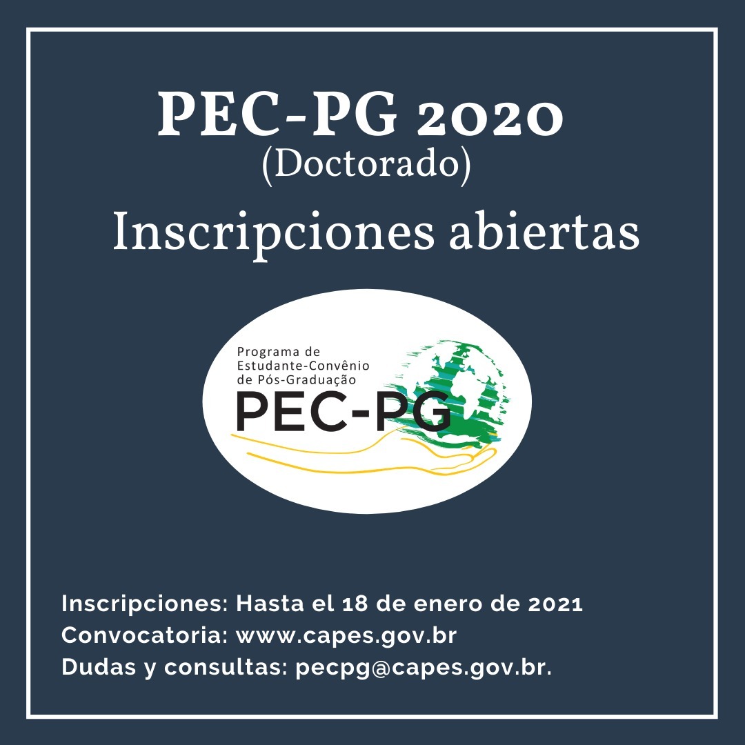 Están abiertas las inscripciones para el Programa de Becas de Postgrado PEC-PG. Son 50 becas de estudios para doctorado, para ingreso en 2021. Inscripciones: Hasta el 17 de enero de 2021
