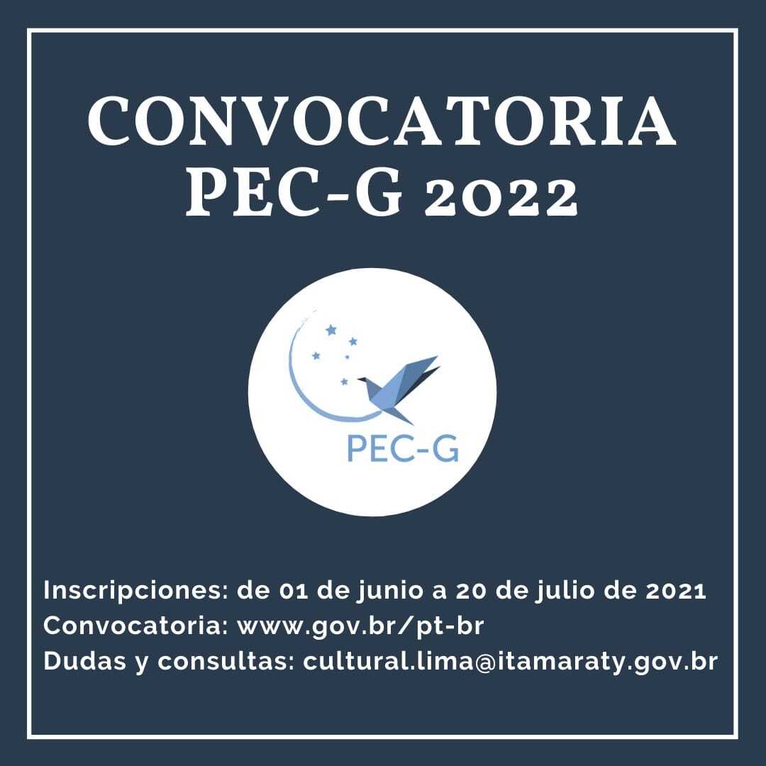 Participa de la Convocatoria 2022 del Programa de Estudiantes Convenio de Graduación del Gobierno Brasileño (PEC-G) Inscripciones: de 01 de julio a 20 de julio de 2021.