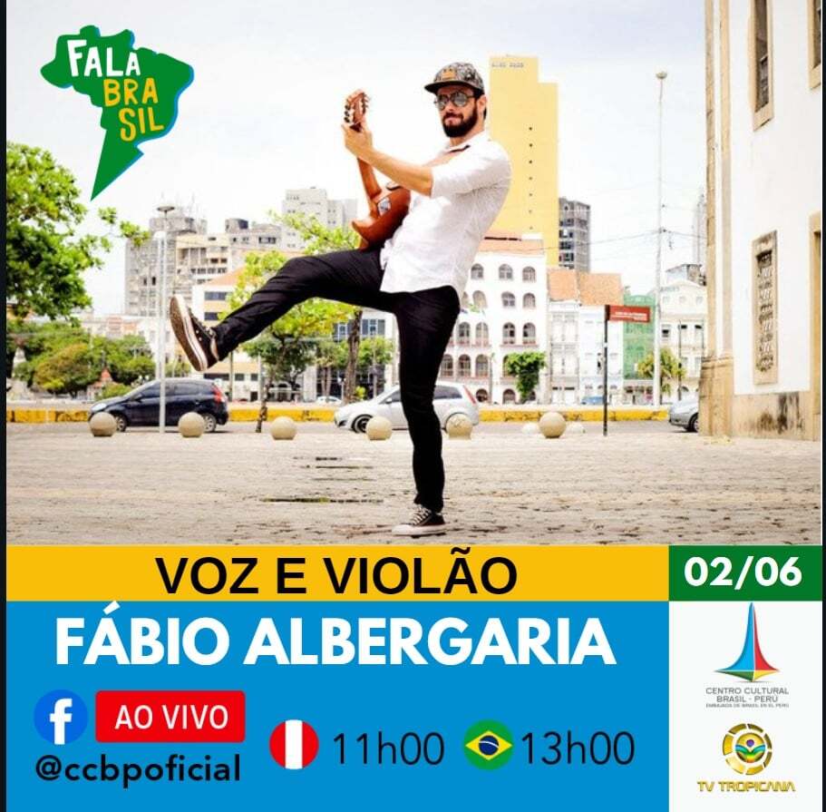 Nesta quarta-feira (02/06), o artista Fábio Albergaria estará no programa Fala Brasil, conversando sobre música, voz e violão.