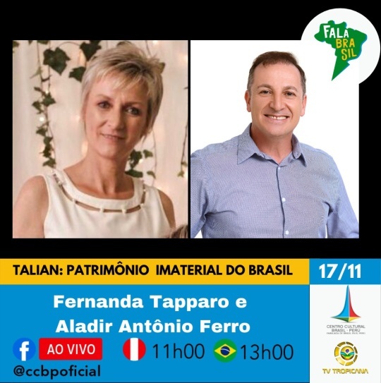 Nesta quarta-feira, 17/11, o Fala Brasil receberá a secretária de cultura de Serafina Corrêa (RS), Fernanda Tapparo e o professor Aladir Antônio Ferro, numa conversa sobre a língua Talian.