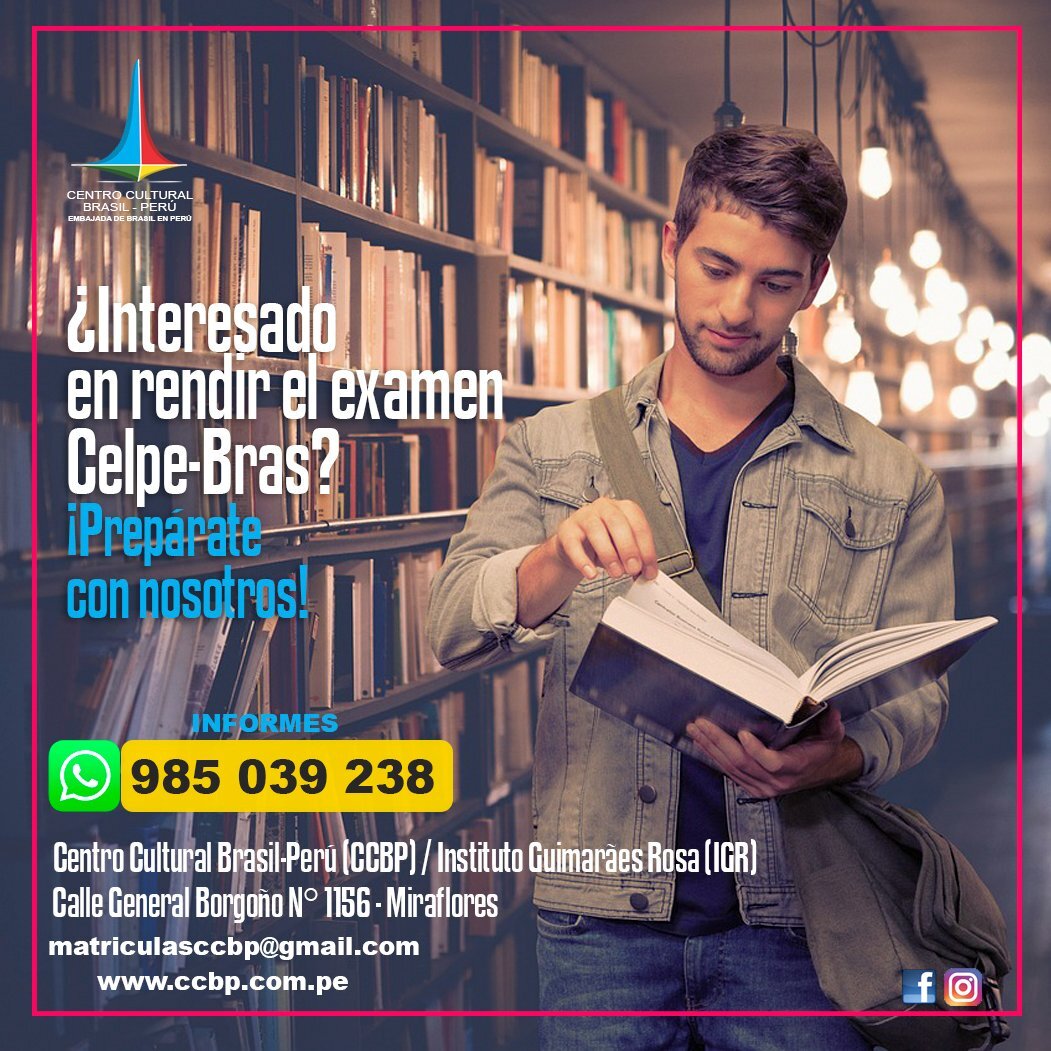 - Para alumnos externos que desean realizar el curso de preparación al examen Celpe-Bras virtual, pero no cuentan con certificado de conocimiento del idioma, pueden solicitar tomar "examen de clasificación" al Whatsapp (+51) 985 039 238