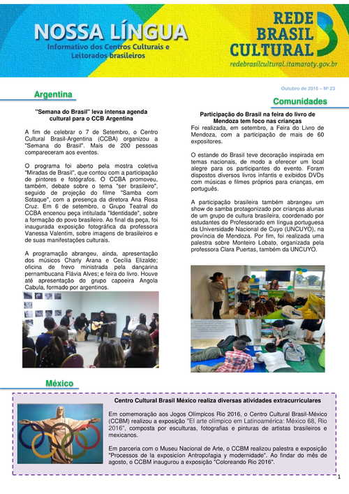 Lima-Perú Tags: * Argentina: "Semana do Brasil" leva intensa agenda cultural para o CCB Argentina