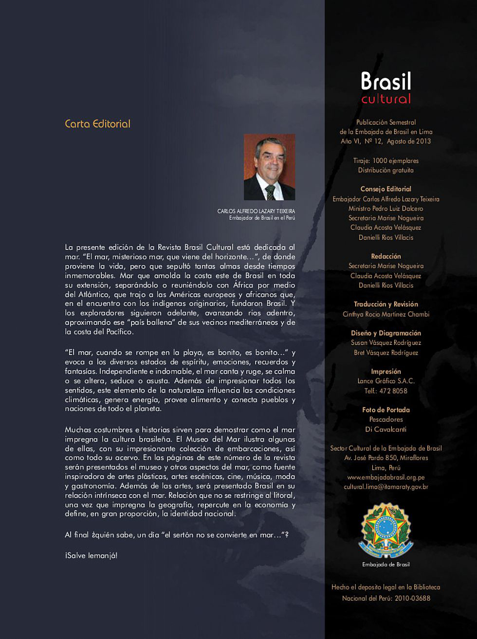 Tags: La presente edición de la Revista Brasil Cultural está dedicada al mar. "El mar, misterioso mar, que viene del horizonte...", de donde proviene la vida, pero que sepultó tantas almas desde tiempos inmemorables.