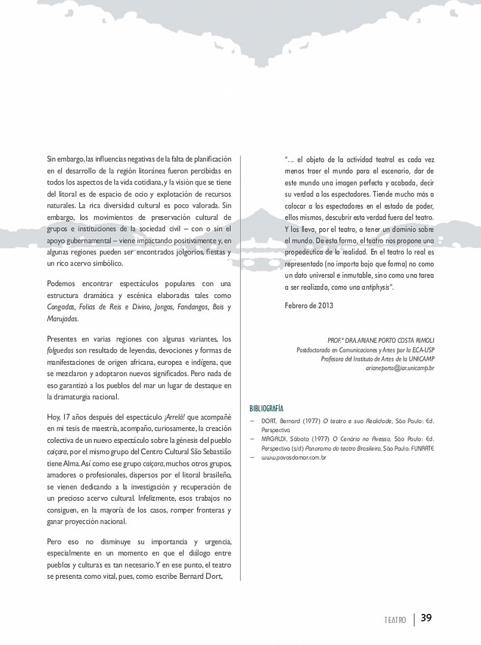 Brasil Cultural - Año VI, Nº 12, Agosto de 2013 •  12-08-2013  •  Nº 12, Agosto de 2012 •  Nº 12 •  Lima - Perú