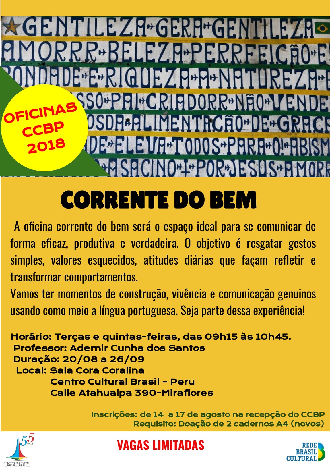 El taller "Corrente do bem" será el espacio ideal para comunicarse de forma eficaz, productiva y verdadera. El objetivo es rescatar gestos simples, valores olvidados, actitudes diárias que hagan reflexionar y cambiar comportamientos.