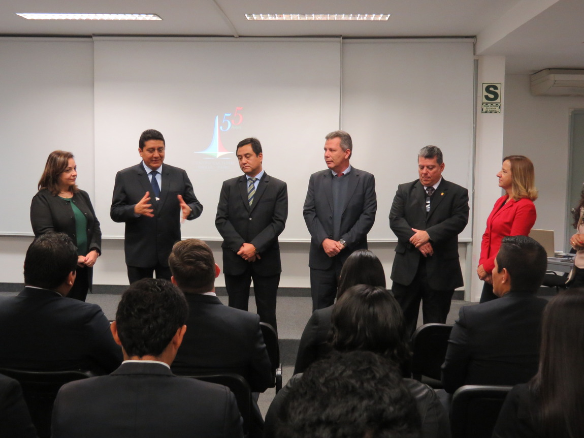Autoridades presentes: Isabel Balué - Adida da Agência Brasileira de Inteligência (ABIN); Comandante Miguel Palma - Investigador Criminal e Analista de Inteligência (PNP); Coronel Oscar Rolando Serván López - Chefe da Direção de Inteligência Antidrogas (Diviad) da Dirandro; Delegado Marcos Farias - Adido da Polícia Federal do Brasil (PF); Delegado Celso Gabriel Castro de Lucena - Adido Adjunto da Polícia Federal do Brasil (PF).