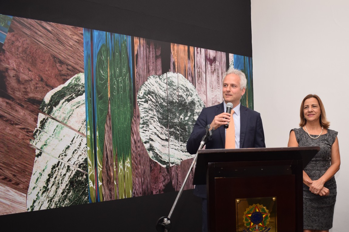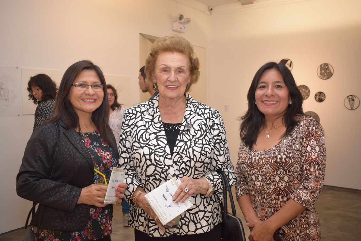 Artista y Profesora de arte Sra. Olga Flores (PUCP), Sra. Rozenilda Falcão - Directora del Centro Cultural Brasil-Perú (CCBP), Sra. Raquel Pires-Secretaria del Sector Cultural de la Embajada de Brasil en Lima y el Ministro Sr. Elio Cardoso.