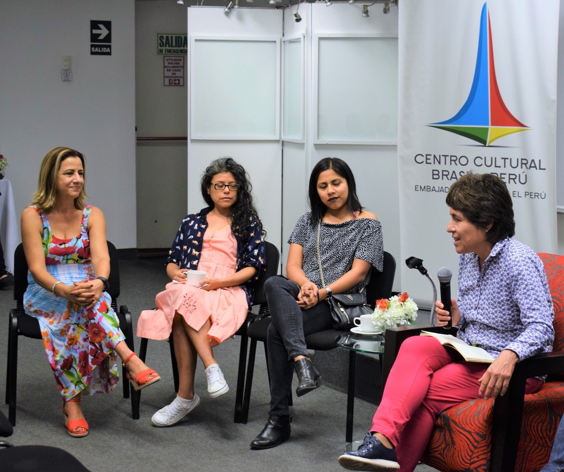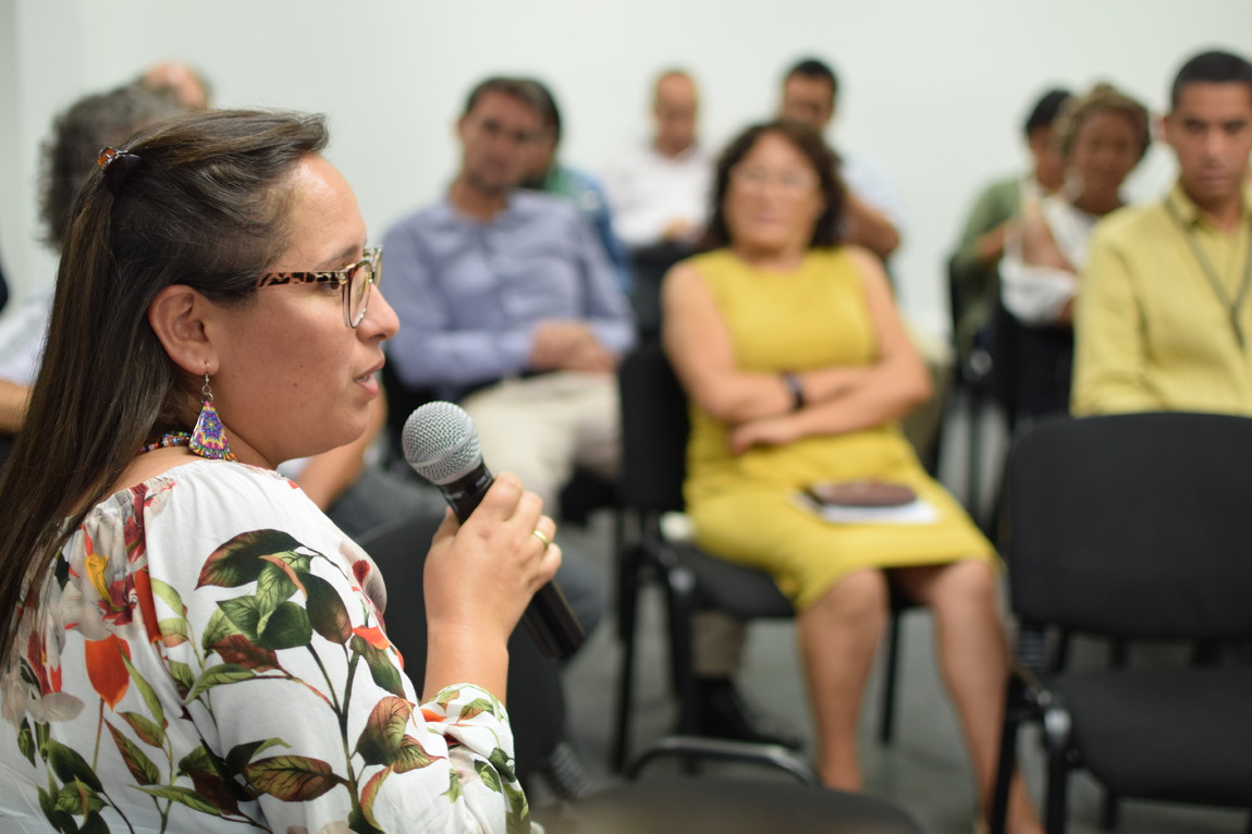 Violeta Barrientos iniciando la Ronda de conversa con los invitados y algunos de los participantes.