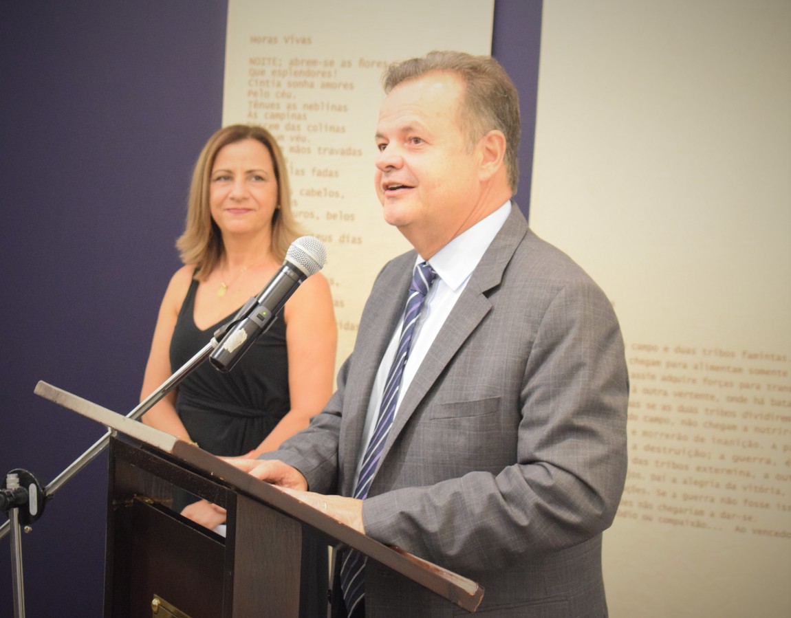 El embajador de Brasil Rodrigo Baena Soares y la Directora del Centro Cultural Brasil- Perú Sra. Rose Falcão, inauguraron la exposición "La Última Flor del Lacio".