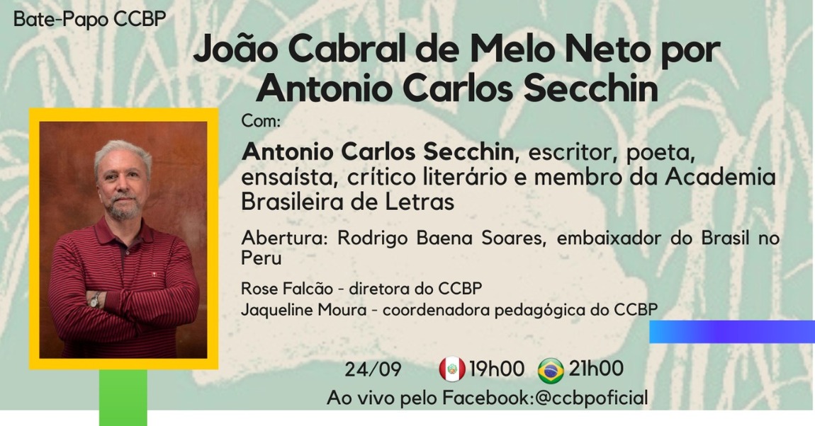 BATE-PAPO CCBP apresenta "João Cabral de Melo Neto por Antonio Carlos Secchin", escritor, poeta, ensaísta e membro da Academia Brasileira de Letras.