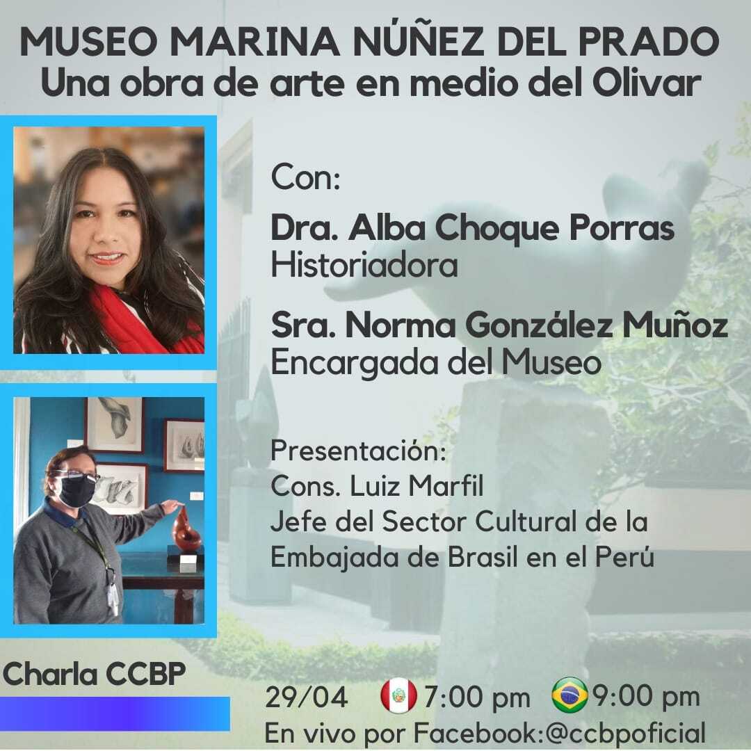 Este jueves (29), acompáñenos en la CHARLA CCBP "Museo Marina Núñez del Prado - una obra de arte en medio del Olivar”.