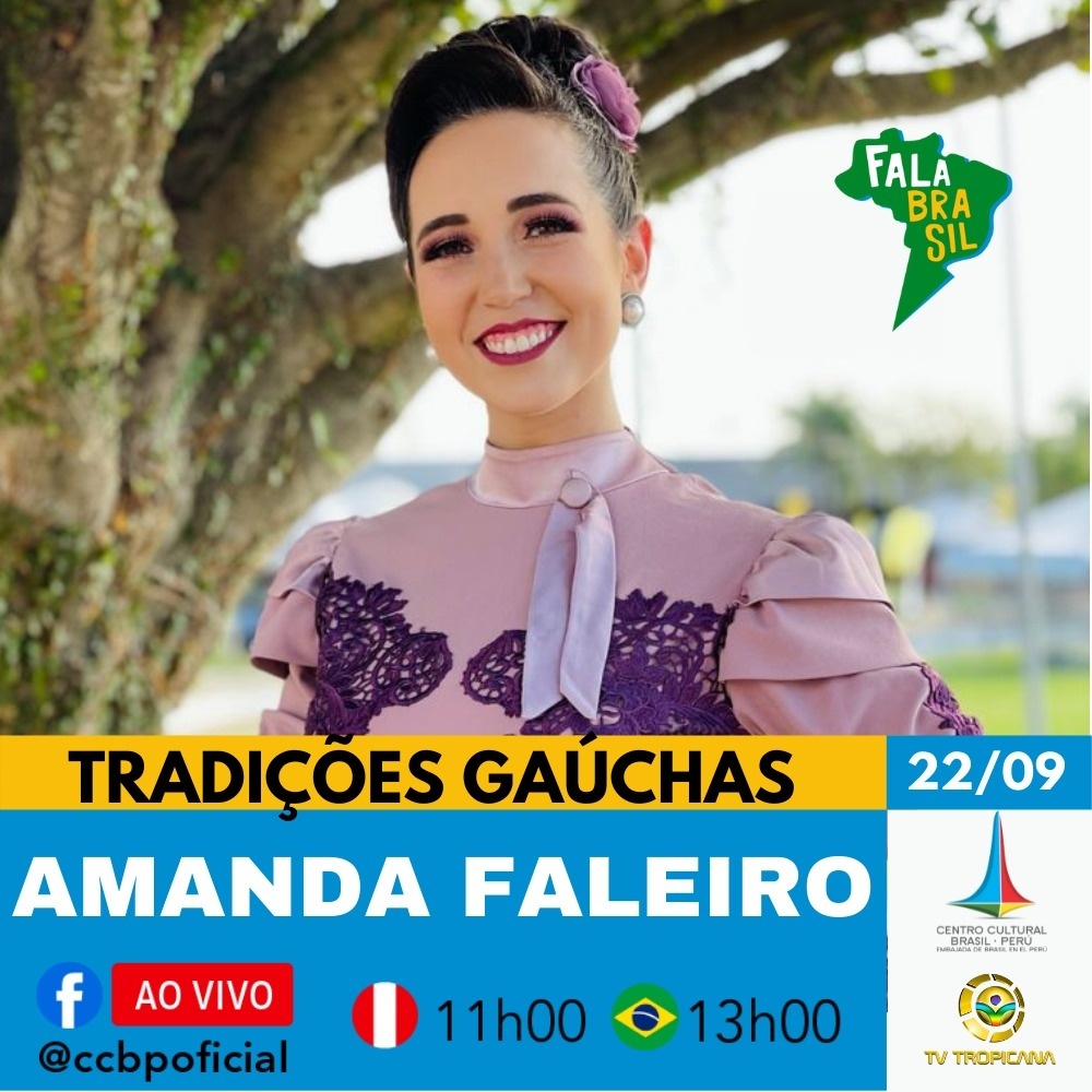 Nessa quarta-feira, 22/09, o Fala Brasil receberá a gestora cultural Amanda Faleiro. O papo será sobre cultura e tradições gaúchas. Venha comemorar o Dia do Gaúcho com a gente! Quarta-feira, 22 de setembro 11h00 / 13h00